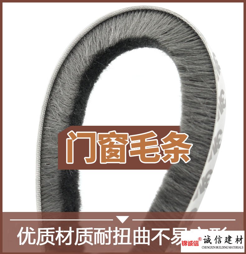 密封毛條是用丙綸絲編織而成,經聚丙烯過塑底部,最后分切而成,隨著原材料價格的攀升,一些生產廠家為了滿足客戶“便宜”的需求,購買劣質原材料,生產出來的毛條掉毛嚴重,底板柔韌性差,易風化、脆裂,使門窗密封性差,因碰撞而損壞門窗,影響使用壽命。